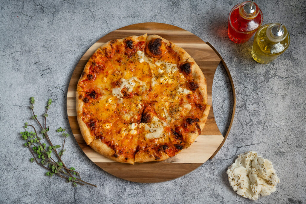 Our four-cheese pizza – mozzarella, cheddar, raclette & parmesan cheese Add pepperoni for £ 2.00